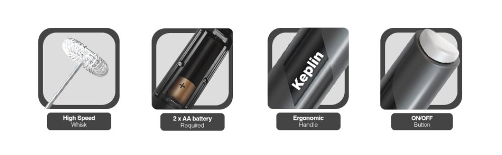 The Keplin Handheld Milk Frother is a compact, battery-operated electric whisk designed to create